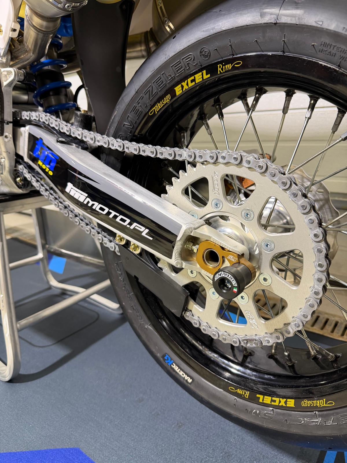 - Podwozie: To nie jest przerobiona crosówka to rama i wahacz który zapewnia bezkonkurencyjną sztywność bo jest zbudowana od podstaw z myślą o zawodach SuperMoto.